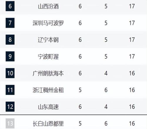 而6-10全部都是6胜,分别是山西、深圳、辽宁、宁波和广州。其中山西、深圳和辽宁都是两连胜,之前山西与辽宁遭遇连败,这两场比赛算是让他们缓口气了,不过后续能不能继续保持好的趋势还是未知数,因为球队的弊端没有改变。宁波这轮即便惜败北京,他们本赛季必然会成为搅局者。广州则少打一场比赛,这轮拿下新疆之后,已经三连胜了。