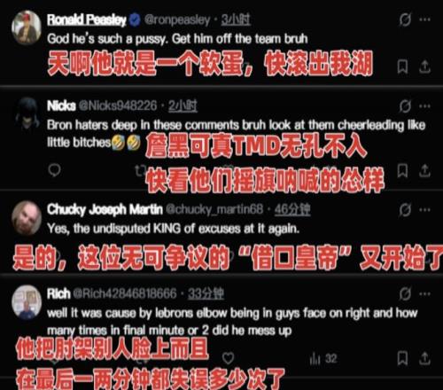 所以詹姆斯现在这种行为,彻底在美国社交媒体上引发了轩然大波,美国网友已经开始集体围攻他了。在詹皇的评论下面,底下的网友第1条评论就说得很明白:“他就是一个软蛋,快滚出湖人。”第2条评论则是说:“这位无可争议的借口之王,又开始找借口了。”
