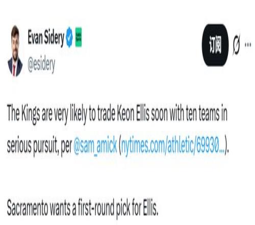 尽管埃利斯拥有备受青睐的“3D”属性,国王队主帅克里斯蒂却在过去两场比赛中弃用了他。消息人士称,国王队希望通过这笔交易得到一个首轮末段的选秀签。