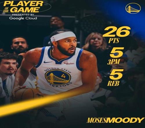 凭借这样的表现,穆迪在赛后被勇士队官方评选为本场最佳。