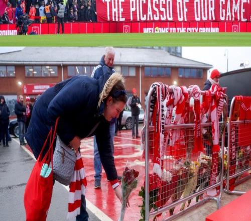 北京时间12月27日,英超第18轮诺丁汉森林主场对阵曼城赛前,双方列队为不久前离世的诺丁汉森林队传奇约翰-罗伯逊举行默哀仪式。本轮赛前,诺丁汉森林队主场周边已为纪念罗伯逊设